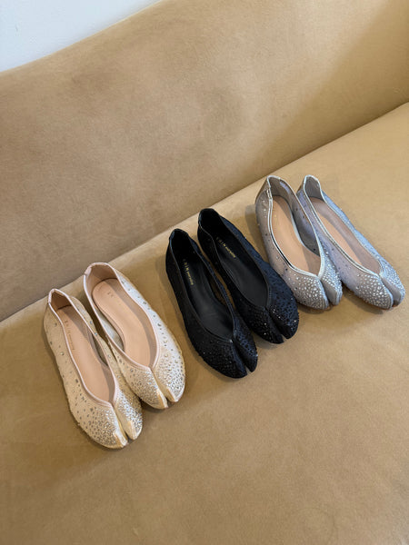 made of beaded french tulle material for the elegant finish on flat ballet shoes.